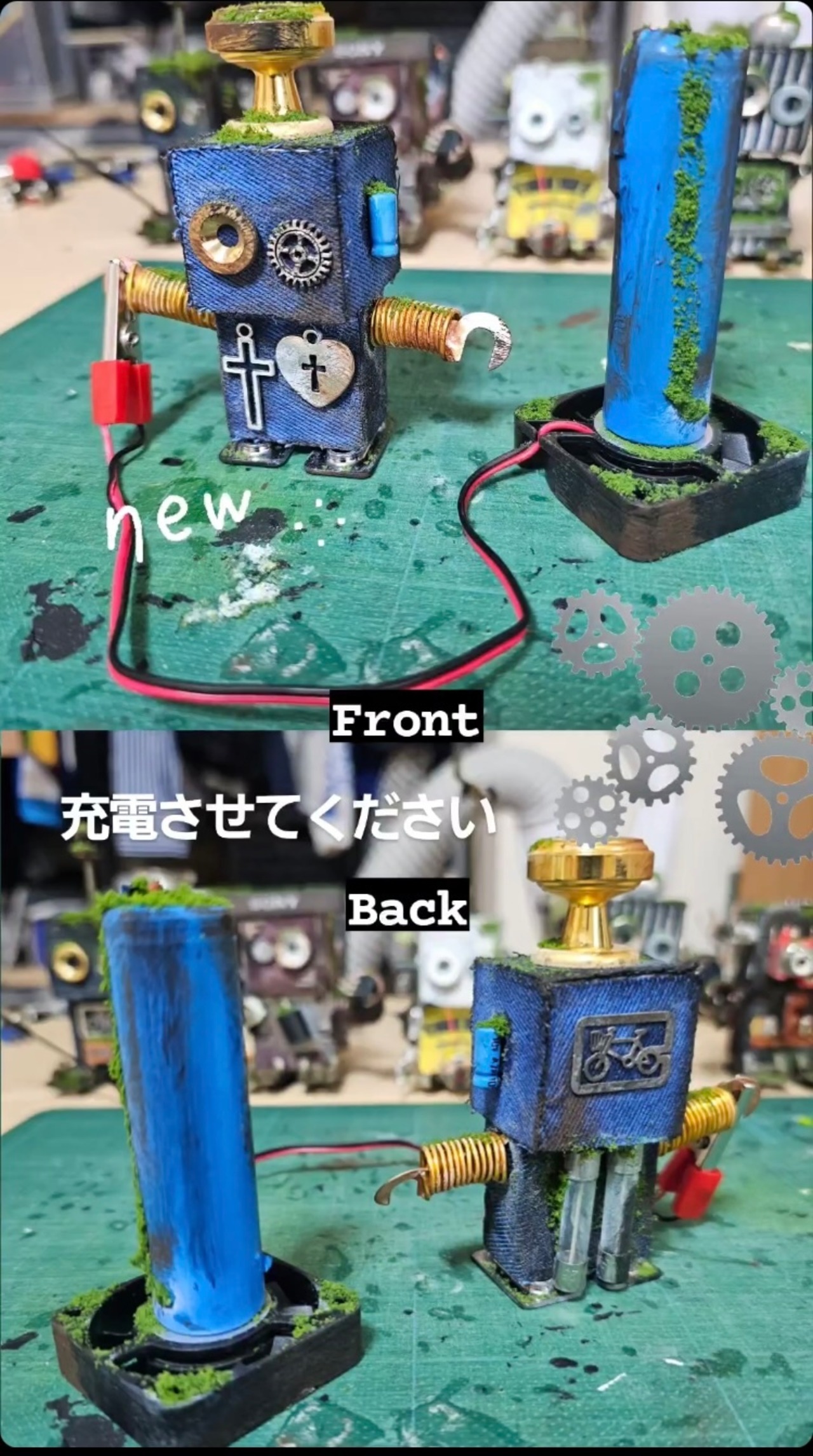 アナタの子供が夢中になる、ユニークなデニムロボットが登場しました!木のブロックにデニムを貼り付け、真空管やモーターなどを身に付けたこのロボットは、まさに一目で個性を感じることができます。